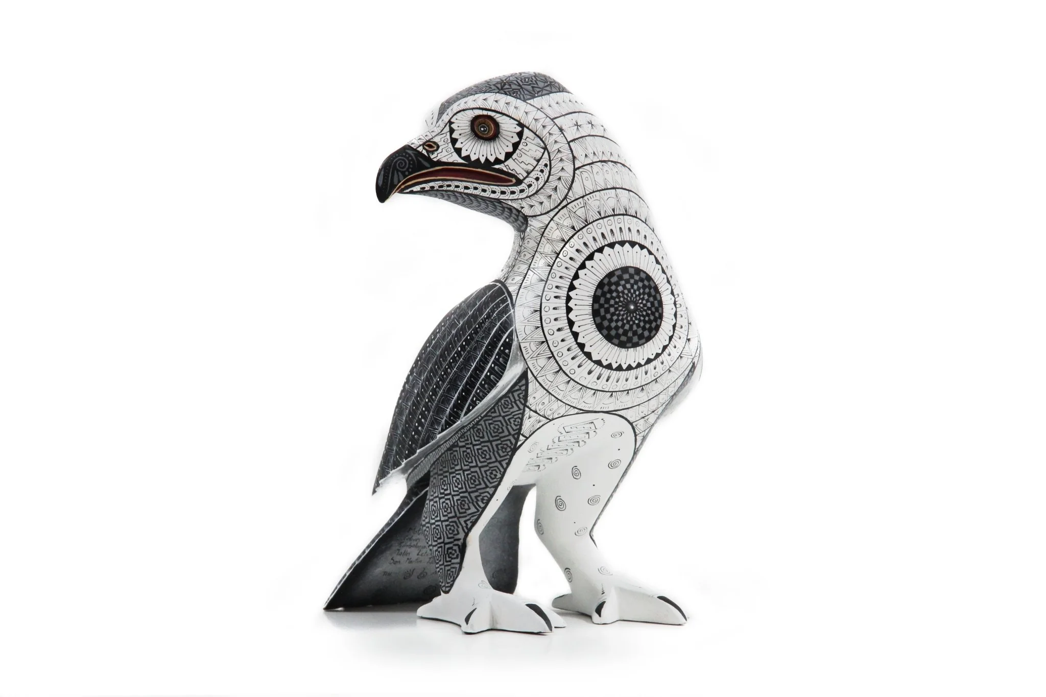 El círculo negro en el pecho del ave es un toque de simbolismo que agrega profundidad a esta obra de arte. La pose calma y serena del ave, viendo hacia un lado, invita al espectador a explorar la paz y la quietud del mundo natural. El Alebrije – Ave es perfecto para aquellos que buscan un objeto decorativo que les permita conectarse con la naturaleza y la espiritualidad.
