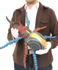 Este Alebrije Escarabajo gigante es una pieza artística impresionante que combina la tradición de los alebrijes mexicanos con el simbolismo y la estética. El alebrije tiene un diseño majestuoso, con la parte delantera roja y franjas verdes que recorren todo el cuerpo.