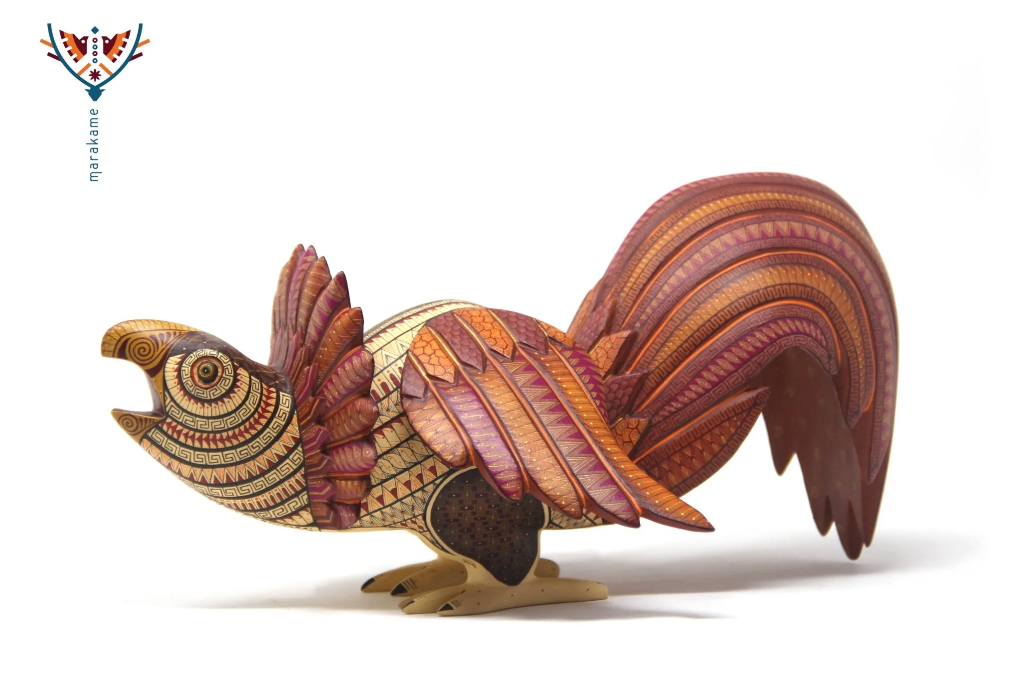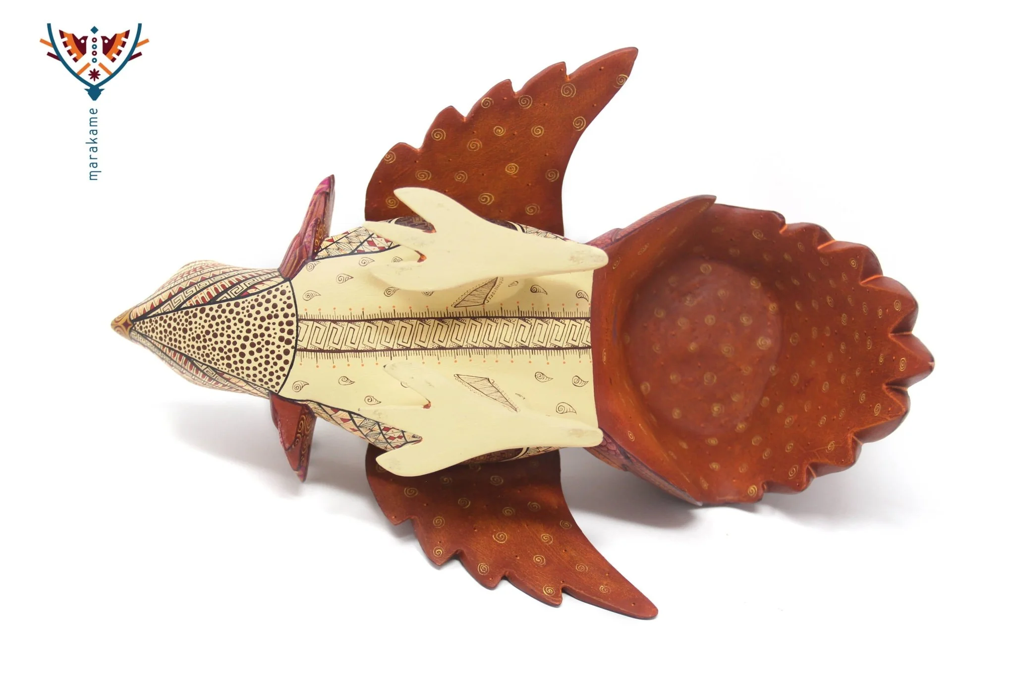 ◇ Técnica: Pintado a mano sobre talla de madera de copal (Bursera spp.).