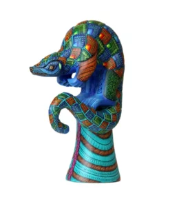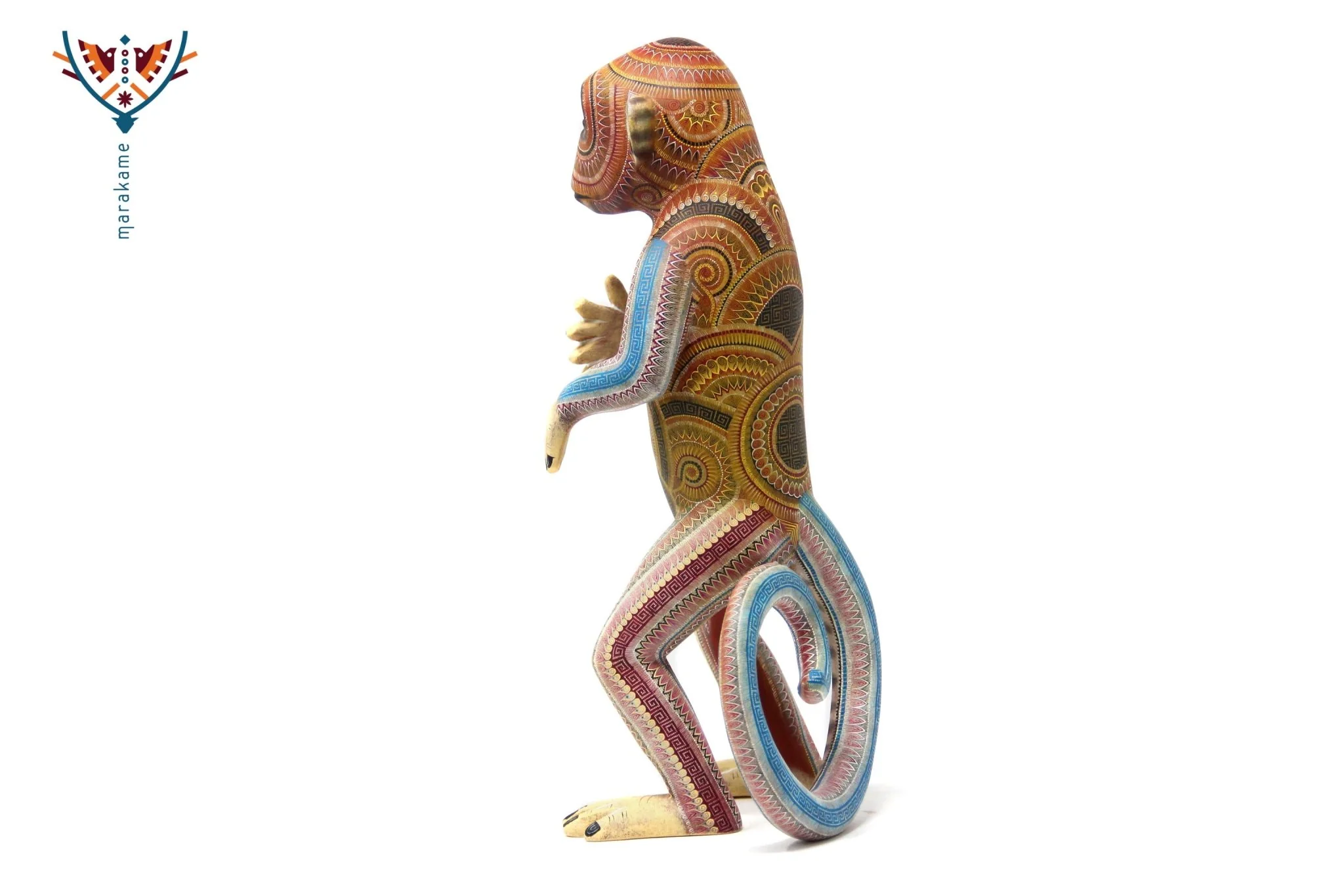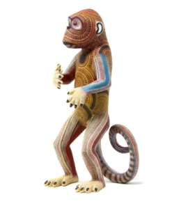 En el mundo animal, donde la sabiduría y la conexión con los demás son fundamentales, se encuentra este hermoso alebrije. La figura del simio se presenta en postura erguida sobre dos patas, con la cola enroscada para mostrar su agilidad y equilibrio.