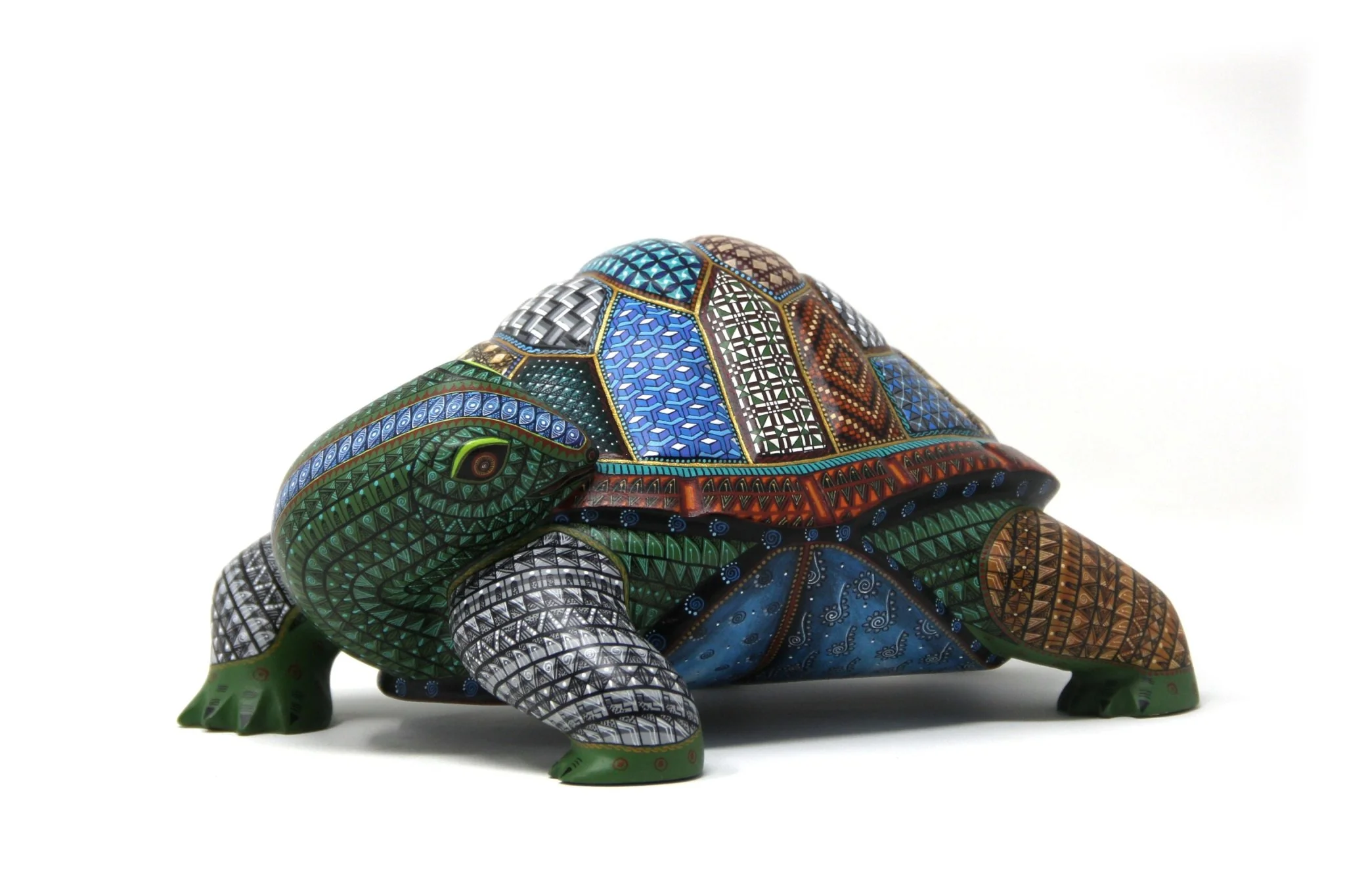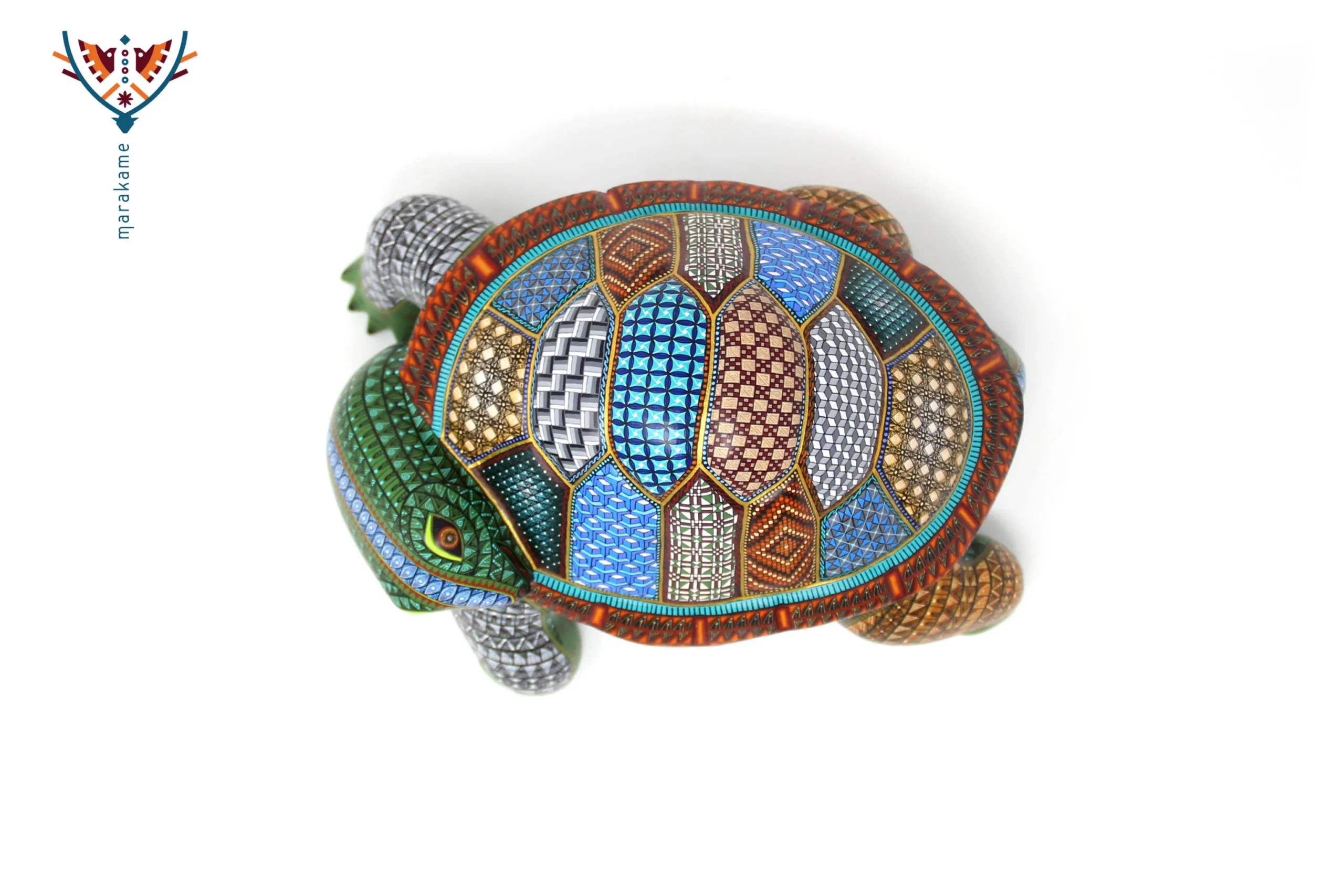 Esta selección especial de Alebrije oaxaqueño comisionada por Marakame a los mejores autores de alebrije moderno, es pintado a mano sobre talla en madera del árbol de copal (Bursera, spp), el cual crece a los alrededores de las comunidades de San Martín Tilcajete y San Antonio Arrazola, localidades de la región Zapoteca del Estado de Oaxaca, en el Sur de México. También se utiliza de forma común la talla en madera de cedro por las características de esta madera.