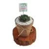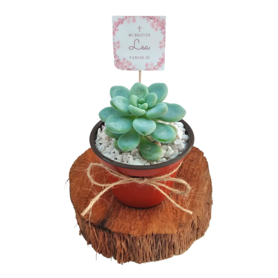 Suculenta baby de diferentes variedades en maceta de 3 pulgadas de diámetro por 6 cm de alto, decorada con piedra y mecate o listón de color a elegir. Incluye tarjeta personalizada por lo que nuestro equipo de diseño te contactará lo antes posible después de tu compra.
