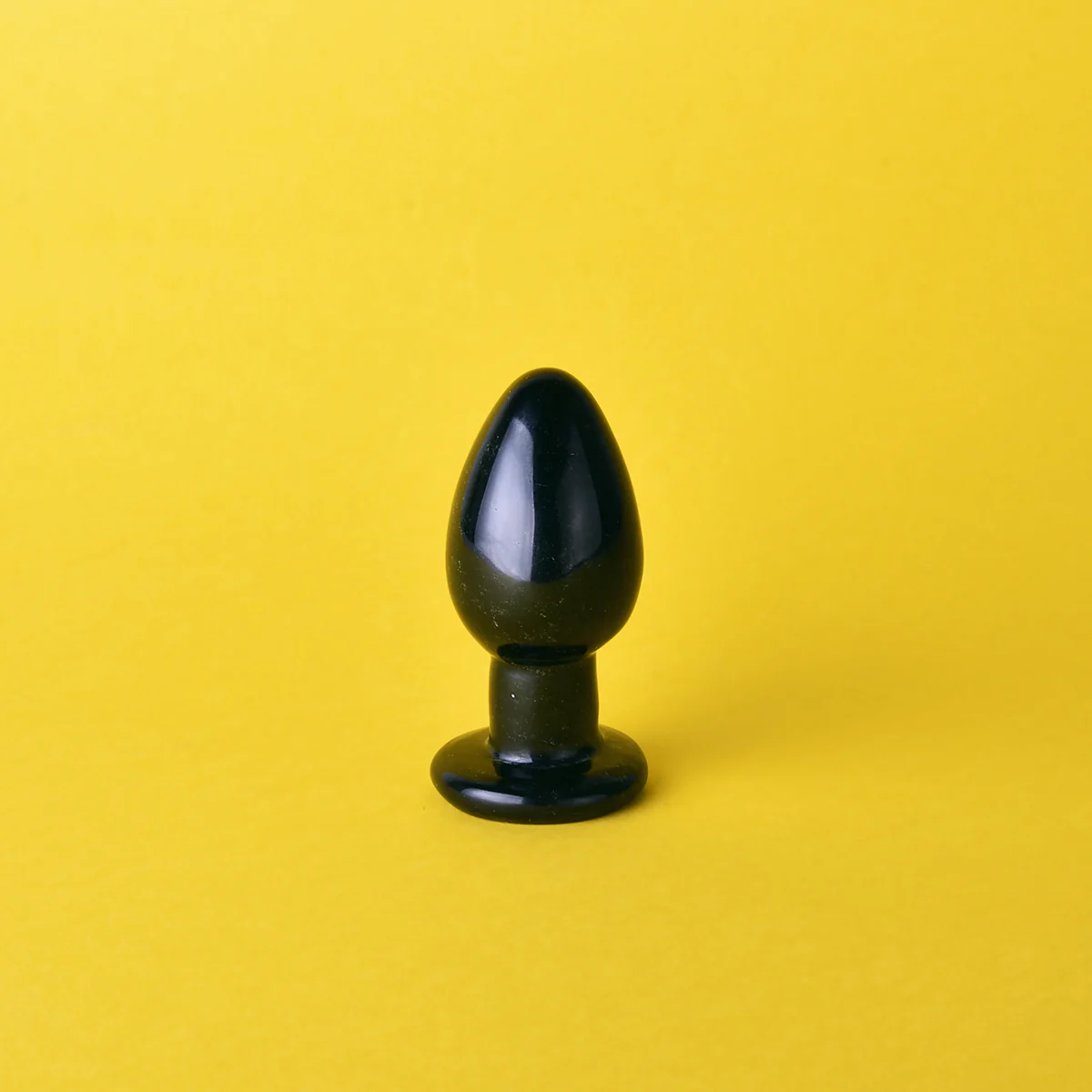 Obsidiana cortada y pulida con torno. Pieza del taller de los Hermano Ortega Moreno.
