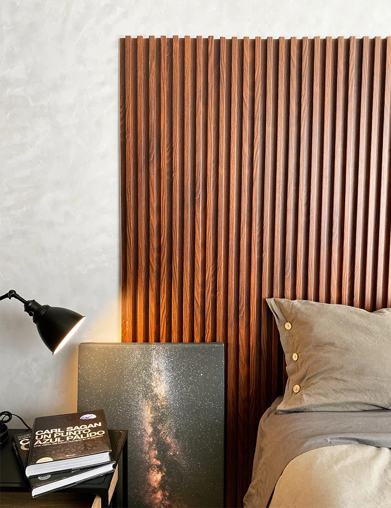 El panel WPC para interiores está compuesto por un 60% de resina de madera y un 40% de PVC, y está acabado con un revestimiento de impresión texturizado que le confiere el aspecto de la madera.