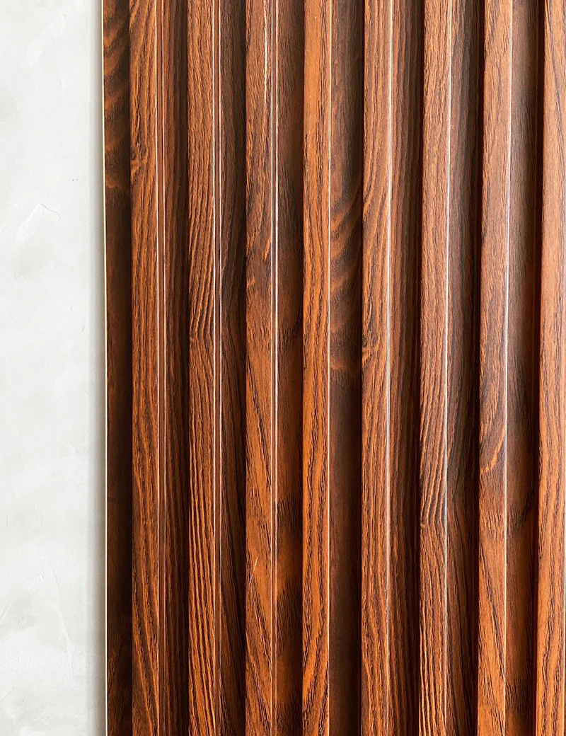 El panel WPC para interiores está compuesto por un 60% de resina de madera y un 40% de PVC, y está acabado con un revestimiento de impresión texturizado que le confiere el aspecto de la madera. La caja contiene 18 paneles, cubre un área de 2.90m x 2.90m, para un total de 8.4 m².