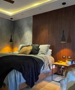 El panel WPC para interiores está compuesto por un 60% de resina de madera y un 40% de PVC, y está acabado con un revestimiento de impresión texturizado que le confiere el aspecto de la madera.