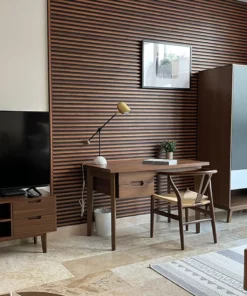 Lambrin WPC Interior Color Tulum El panel WPC para interiores está compuesto por un 60% de resina de madera y un 40% de PVC, y está acabado con un revestimiento de impresión texturizado que le confiere el aspecto de la madera. La caja contiene 18 paneles, cubre un área de 2.90m x 2.90m, para un total de 8.4 m².