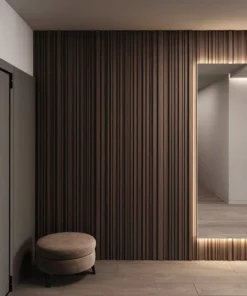 El panel WPC es de uso exclusivo para interiores. Está compuesto por un 60% de resina de madera y un 40% de PVC, y cuenta con un revestimiento de impresión texturizado que le confiere su textura. La caja contiene 20 paneles, cubre un área de 2.9m x 3.1m, para un total de 9 m2.