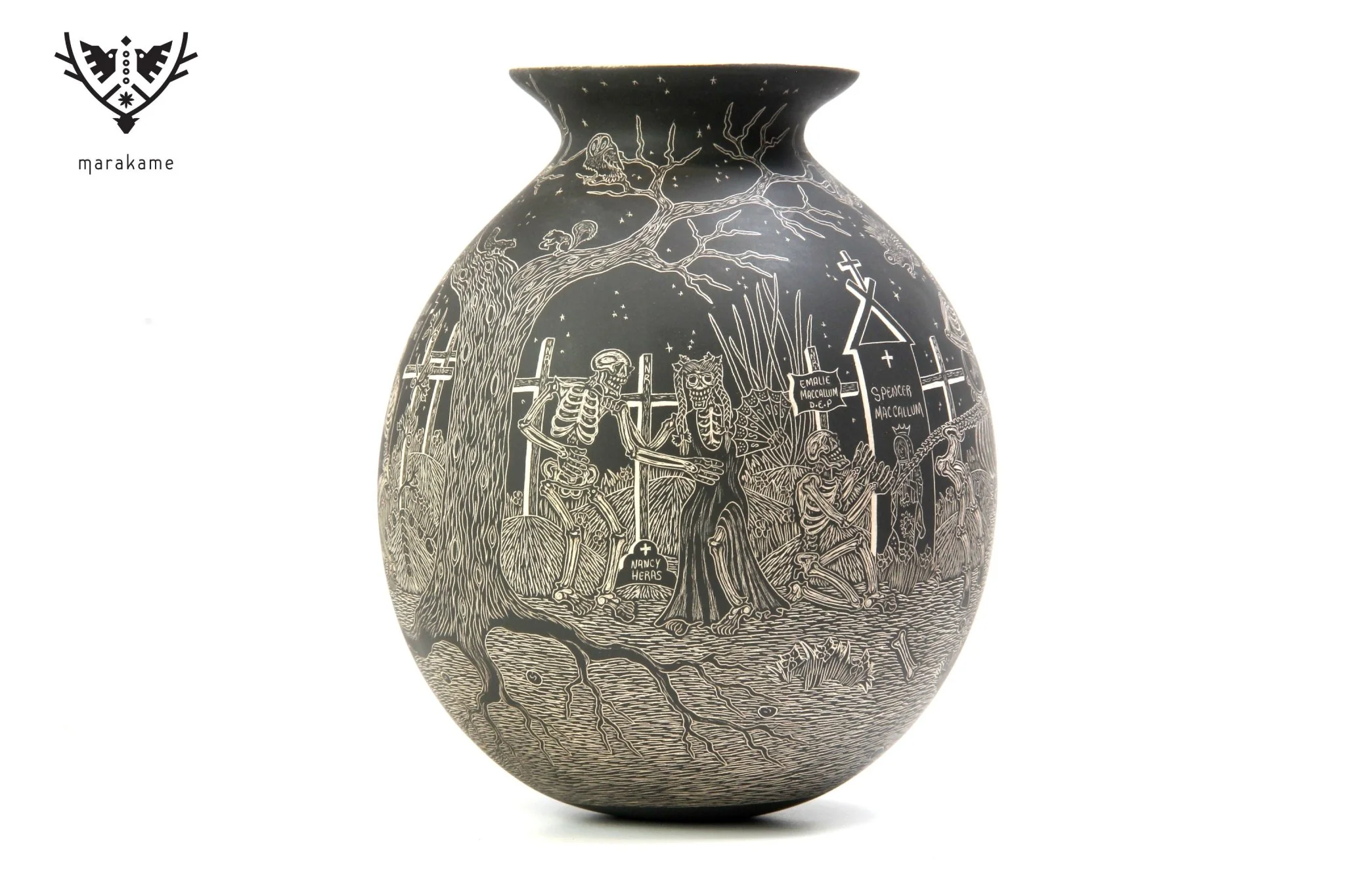 Héctor Javier Martínez (Mata Ortiz, 1984) irrumpió en la escena alfarera de Mata Ortiz en el año 2008, con el estilo característico que lo distingue hasta el día de hoy: los motivos de la noche y el día de los muertos, en un modelo gráfico muy mexicano y personal. Éste fue resultado de una conversación que él sostuvo con el conocido coleccionista norteamericano Steve Rose. Héctor ha sido ganador del Premio Nacional de Cerámica en Tlaquepaque, Jalisco en 2014, y ha recibido reconocimientos importantes en el Concurso Anual de Cerámica en Mata Ortiz. Continúa con su labor colaborando con su compañera Gabriela Pérez, con quien comparte créditos en la firma de sus piezas.