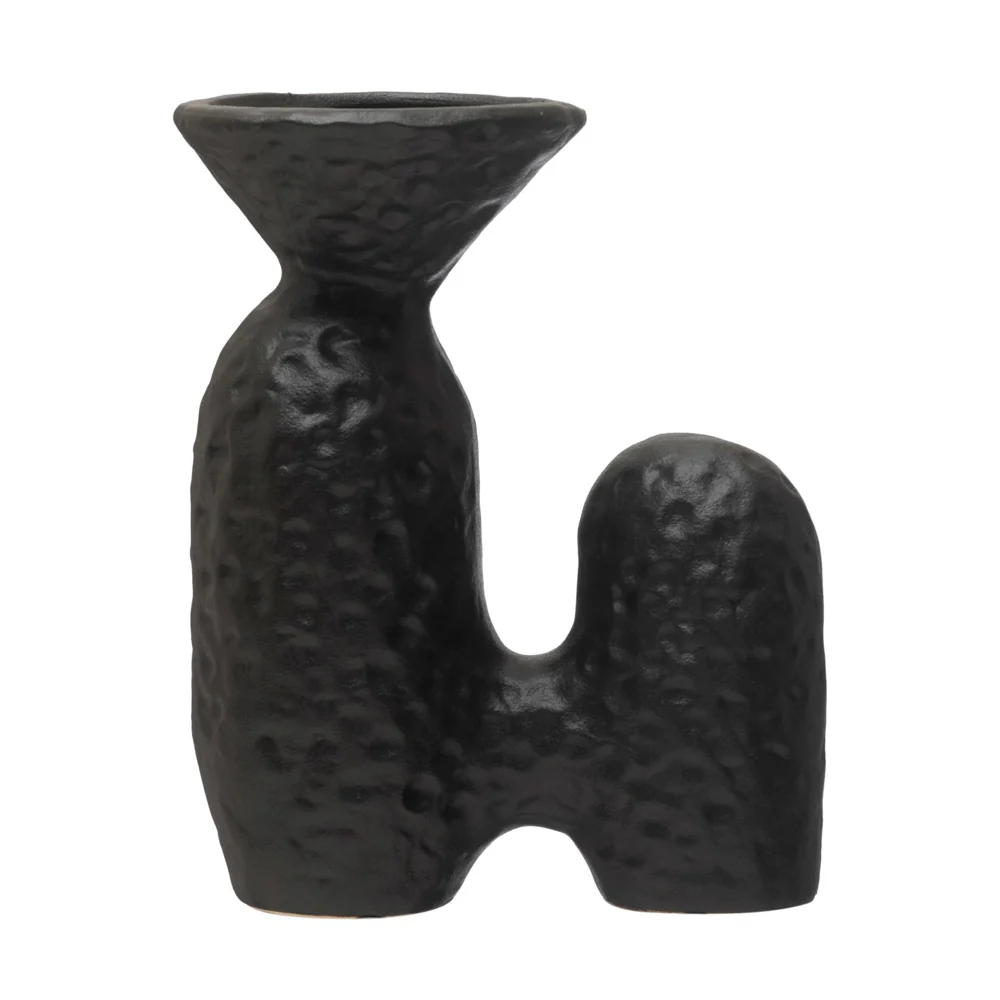 FLORERO NEGRO TIPO ESCULTURA MARTILLADA