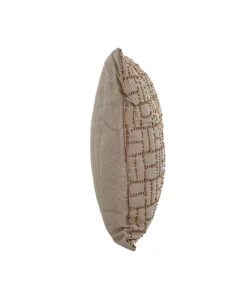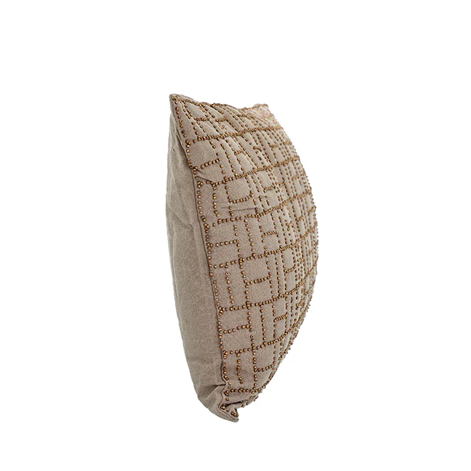 KC241235 Cojín Lino Natural Pedrería Oro 35×50 cm.
