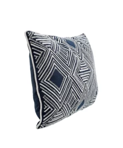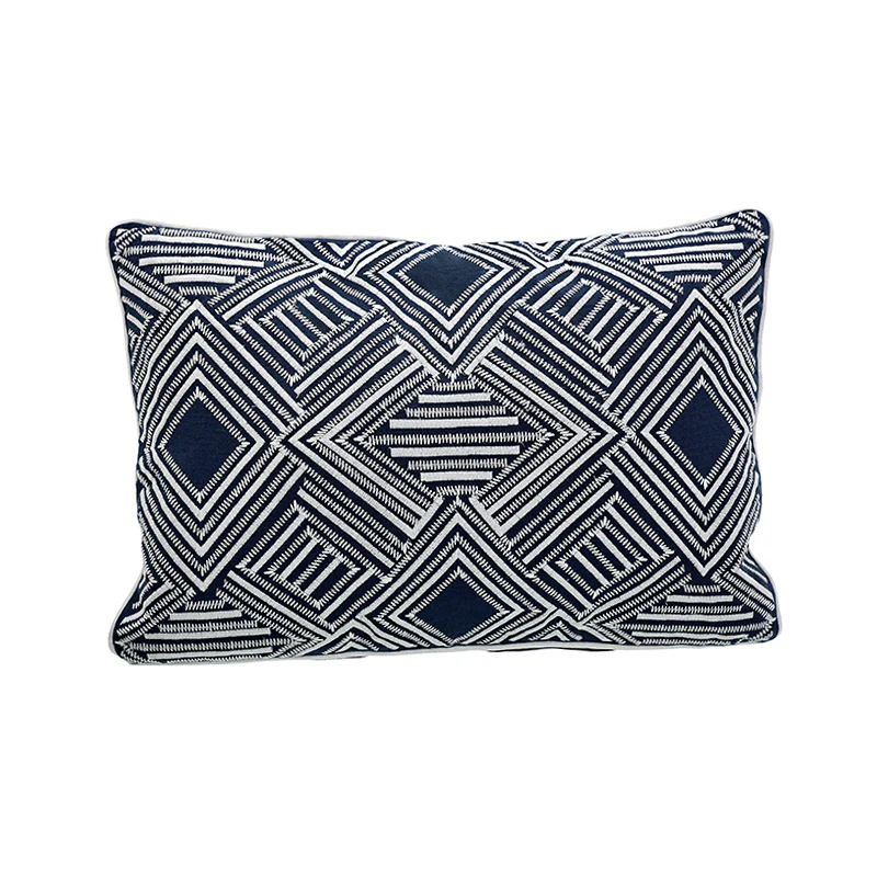KC244035 Cojín Mykonos Azul Marino Bordado Blanco 35×50 cm.