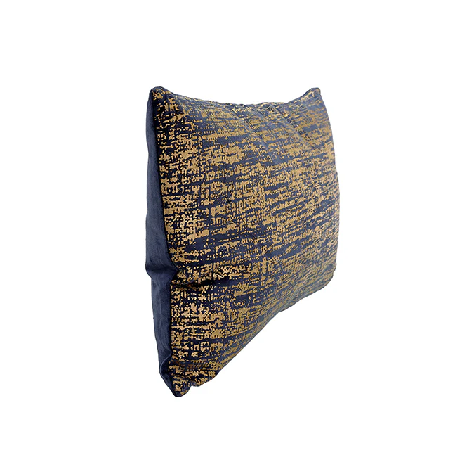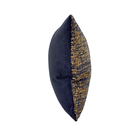 KC246235 Cojín Terciopelo Azul Acero Impresión Oro 35×50 cm.
