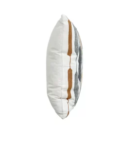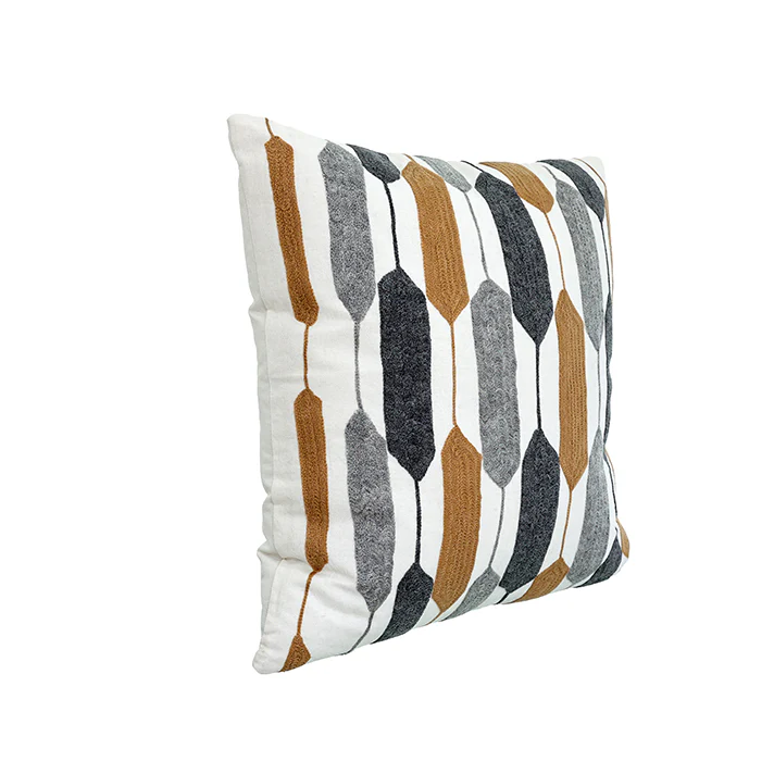 KC249550 Cojín Niza Blanco Bordado Gris y Vaqueta 50×50 cm.