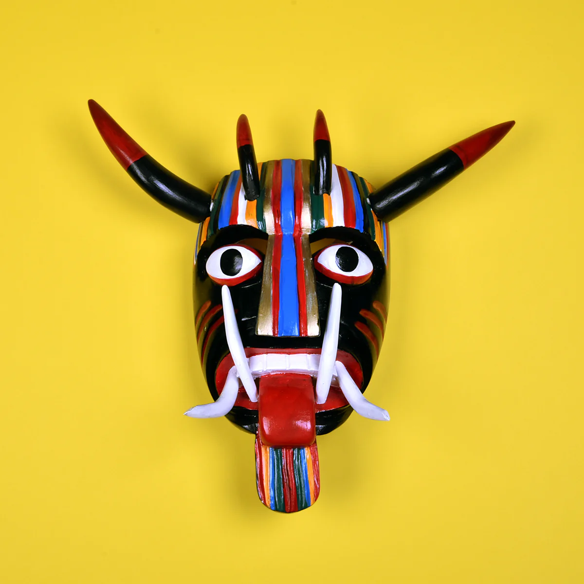 Madera de tronco de copal y aguacate, tallada, pulida y policromada con laca automotriz.