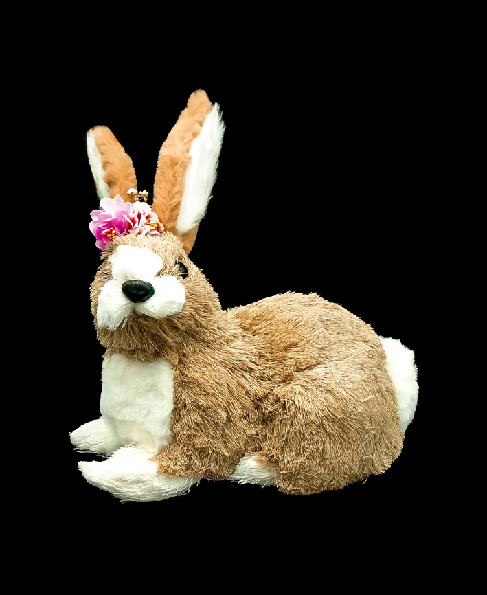 R738018-2 FIGURA CONEJO SENTADO NIÑA JUNCO 25X16X22 CM