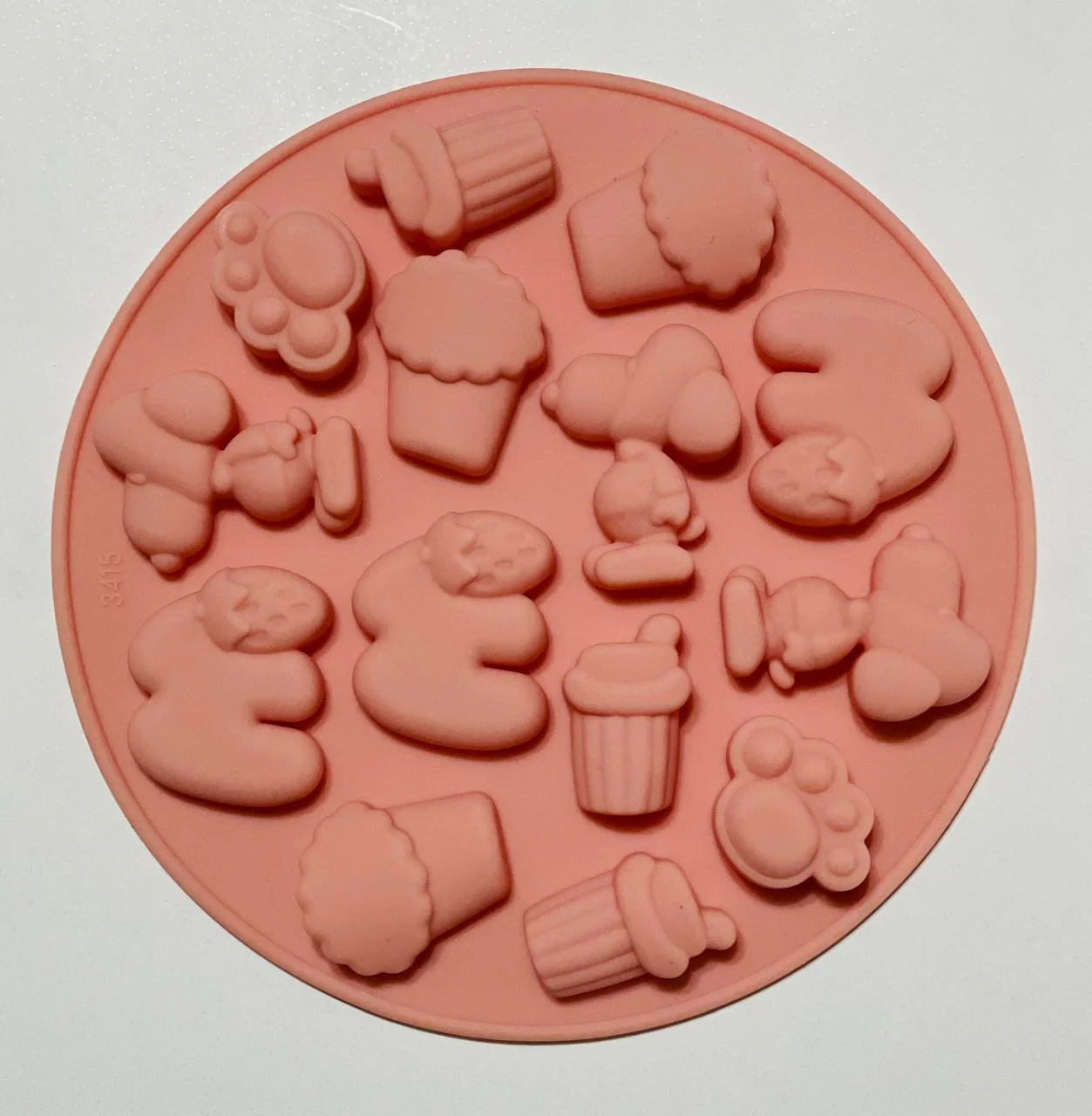 Molde de 14 cavidades con diferentes figuras, huellas, cupcakes, snoopy, nieve etc